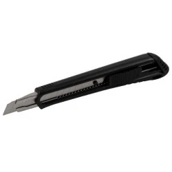 Niewielki nóż z ostrzem łamanym to narzędzie obsługujące ostrza o szerokości 9 milimetrów. Jego kompaktowe wymiary pozwolą Ci schować nóż w dowolnej skrzyni narzędziowej. W pracy narzędziem pomaga ergonomiczny uchwyt i automatyczna blokada ostrza. Nóż z ostrzem łamanym ma trójpłaszczyznową powierzchnię tnącą, co znacznie podnosi skuteczność cięcia. Możesz stosować go przy pracach z twardymi materiałami. Wpływa to również na precyzję wykonywania cięć. Dzięki temu nóż z ostrzem łamanym chętnie wybierany jest do najbardziej precyzyjnych prac, w tym do modelarstwa.