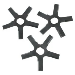 Trzy ostrza stalowe SCROBER wykonane z wysokiej jakości stali przeznaczonej do cięcia tworzyw sztucznych.