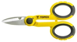 Nożyce TOPEX (nr ref. 32D413) bardzo przydatne przy pracach remontowych oraz podczas majsterkowania. Ostrza wykonane z wysokiej jakości hartowanej stali nierdzewnej, co zapewnia długą żywotność narzędzia. Gumowane uchwyty sprawiają, że nożyczki dobrze leżą w dłoni i nie wyślizgują się, co podnosi komfort pracy. Marka TOPEX skierowana jest do majsterkowiczów.