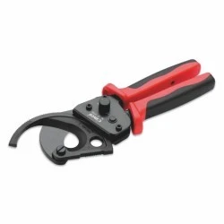 Nożyce do cięcia kabli, z grzechotką. Maksymalna średnica zewnętrzna cięcia kabli: 45 mm. Przeznaczony do cięcia kabli miedzianych i aluminiowych, z wykluczeniem drutu stalowego i kabli zbrojonych stalą. Precyzyjne cięcie dzięki ostrym, specjalnie hartowanym krawędziom tnącym. Kompaktowa, ergonomiczna konstrukcja umożliwia obsługę produktu jedną ręką. Waga: 980g. Ruchoma krawędź tnąca z możliwością pełnego obrotu i odblokowania w dowolnej pozycji, łatwa wymiana noża obrotowego (numer katalogowy 129168). Blokowanie rękojeści za pomocą pokrętła (oznaczenie na czerwono); łatwe otwieranie ostrzy tnących dzięki zapadce, którą można zablokować w pozycji otwartej. Maks. wydajność cięcia Cu (miedź); maks. średnica 45 mm linka 400 mm2 / 800 MCM linka 300 mm2/ 600 MCM sektor sektorowy 3 x 70 SM Al (aluminium) maks. średnica 45 mm linka 400 mm2 / 800 MCM sektor sektorowy 4 x 70 SE.