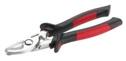 Jednoręczne nożyce do kabli miedzianych i aluminiowych, bardzo dobra wydajność cięcia, gładkie cięcie bez deformacji, kute matrycowo, z precyzyjnym szlifem, regulowany przegub śrubowy, 2-komponentowe uchwyty z tworzywa sztucznego do kabli o średnicy do 25 Ø; pełne 2 mm²; elastyczne 7 mm²; długość 200 mm.