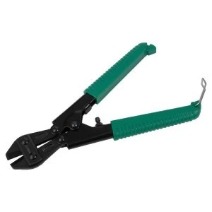 Poręczne nożyce do prętów - mini ułatwią realizację wielu prac w budownictwie i przemyśle. Niewielkie narzędzie ma mocną głowicę, przeznaczoną do cięcia prętów o średnicy do 2 milimetrów. Całe narzędzie ma kompaktowe wymiary i łatwo mieści się w dłoni. Takie parametry sprawiają, że mini nożyce do prętów pomogą Ci przy pracach z instalacjami elektrycznymi. Narzędzie możesz wykorzystać również przy cięciu siatek stalowych czy gwoździ, dlatego warto mieć go w swoim warsztacie.