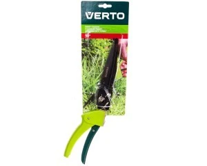 Nożyce do trawy VERTO (nr ref. 15G301) o długości 330 mm. Ostrze o długości 130 mm pokryte powłoką teflonową, zapewniającą ochronę przed korozją. Możliwość obrotu dwufunkcyjnej głowicy w zakresie 90° ułatwia pracę. Ergonomiczne uchwyty zapewniają wygodę podczas użytkowania.