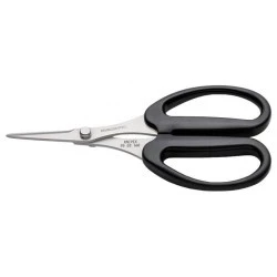 Dzięki precyzyjnym ostrzom z drobnymi ząbkami, nożyczki zapewniają czyste cięcie i zapobiegają wyślizgiwaniu się włókien podczas pracy.