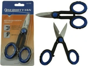 Nożyczki dla elektryków z ostrzami przeznaczonymi do przecinania cienkich przewodów, taśm izolacyjnych czy rurek termokurczliwych.