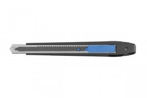 Nóź z ostrzem łamanym, uniwersalnego zastosowania, pomocny przy do wykonywaniu prac wykończeniowych. Przeznaczony szczególnie do cięcia kartonów, tapet, wykładzin, tkanin plandekowych, folii drukarskich oraz folii PVC, itp.