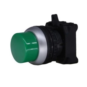 RS Pro z głowicą przyciskuRS Pro bez podświetlania, okrągły przycisk głowicy jest zielonym, podtynkowym urządzeniem do montażu paneli. Ma średnicę 22,5 mm. Element uruchamiający jest wykonany z tworzywa sztucznego i ma nowoczesną, srebrną osłonę. W zestawie: W zestawie zacisk montażowy bloku styków.Charakterystyka i zalety• Łatwy montaż • trwałość mechaniczna wynosi ponad milion zastosowań • Wytrzymała konstrukcja • Sterowanie sprężyną powrotną • konstrukcja z możliwością łączenia w stosy dla bloków stykowych (maks. 9)Zastosowania• fabryki • zastosowania w przemyśle • elektrownieCertyfikaty• stopień ochrony IP65