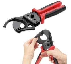 ? Jednoręczne nożyce do kabli z grzechotką do cięcia kabli o średnicy zewnętrznej maks. 45 mm bez ich ściskania.