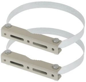 Uchwyt stalowy, malowany proszkowo, przeznaczony do zamocowania na słupach obudów kamer lub samych kamer.