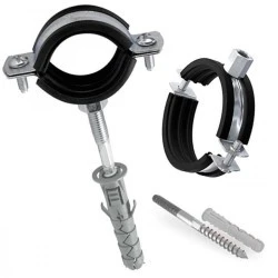✔️ Obejma stalowa z gumą OSZG stosowana do montażu wszystkich rodzajów rur, peszli w układzie pionowym i poziomym.