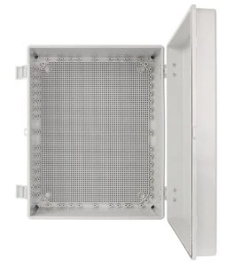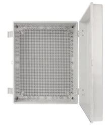 Nazwa: Obudowa ABS 500x400x200, wodoszczelna z zawiasami i płytą montażową Przeznaczenie Obudowy serii AWB przeznaczone są do ochrony urządzeń elektronicznych i elektrycznych przed wodą, pyłem oraz uszkodzeniami mechanicznymi. Wymiary 395 x 500 x 200 [+/-2 mm] Płyta montażowa 350 x 450 [+/-2 mm] zintegrowana płyta montażowa z perforacją kwadratową Zamykanie plastikowa klamra zatrzaskowa - 2szt. Montaż natynkowy Wykonanie tworzywo ABS, jasny szary Stopień ochrony EN60529 IP 66 Gwarancja 2 lata Uwagi - 2 plastikowe zawiasy w komplecie - 4 dodatkowe uchwyty montażowe - obudowa posiada otwór plombowy - zamontowana uszczelka w pokrywie obudowy