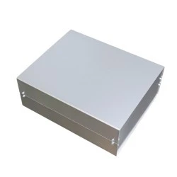 ZR jest to seria aluminiowych obudów skręcanych na szynach ZR. Składają się one z podstawy, pokrywy, dwóch boczków oraz szyn montażowych ZR. W komplecie są cztery stopki montowane w podstawie klinem blokującym, obudowę skręca się na szynach ZR do których boczki przykręcamy za pomocą dołączonych do zestawu ośmiu wkrętów 4/13, podstawę oraz pokrywę skręcamy za pomocą ośmiu kompletów składających się z kwadratowej nakrętki M4 i gumowej podkładki wsuwanych do prowadnicy w szynie oraz śrub M4/8. Szyny ZR posiadają 11 wycięć które umożliwiają montaż płytek PCB na różnej wysokości, mogą również służyć jako radiator jeśli zaistnieje potrzeba uzyskania płaskiej powierzchni w celu lepszego odprowadzania ciepła zapraszamy do kontaktu z Dane techniczne