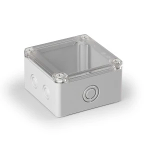Obudowa Cubo S Ensto 100x100x60mm podstawa 50mm boki gładkie szare pokrywa przezroczysta IP67 PC SPCP101006T