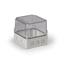 Obudowa Cubo S 125x125x125mm podstawa 50mm boki gładkie szare pokrywa przezroczysta IP67 ABS SABP131313T