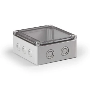 Obudowa Cubo S Ensto 100x100x60mm podstawa 50mm boki gładkie szare pokrywa przezroczysta IP67 PC SPCP101006T