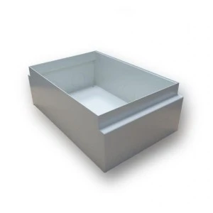 Obudowa (puszka) do betonu do puszki z ramką EM/FLB-SCF320PP. Posiada osłabienia na ściankach do wybicia otworów do wprowadzenia przewodów. Umożliwia montaż w wykutym otworze lub w betonie wylewanym. Ze względu na większą głębokość umożliwia obniżenie w puszce z ramką płaszczyzny montażu gniazd.
