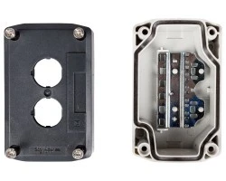 Obudowa kasety 2-otworowa jest przede wszystkim dedykowana operatorom maszyn sterowniczych. Puste otwory umożliwiają skonfigurowanie kasety według indywidualnych preferencji. W obudowie mogą się znaleźć zarówno elementy sterowania i sygnalizacji, których otwór montażowy ma średnice 22 mm.