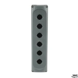 MEP6-0 Obudowa składa się z sześciu miejsc, pustej, szarej obudowy z tworzywa sztucznego. Obudowa ta może pasować zarówno do serii modułowej, jak i kompaktowej. Seria modułowa może posiadać unikalną możliwość zamontowania do 5 bloków stykowych przypisanych do jednego operatora. Stopień ochrony: IP66 UL/NEMAtyp 1, 3R, 4, 4X, 12, 13