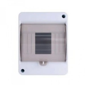 Obudowa natynkowa pod aparaturę modułową, z miejscem na pięć modułów (1x5S) oraz możliwością umieszczenia dwóch plomb po przekątnych rogach obudowy, wykonana z tworzywa ABS charakteryzującego się wysoką odpornością mechaniczną, w kolorze białym, ze stopniem ochrony IP40 i z samoblokującą się klapką otwieraną do góry, przystosowaną do plombowania w kolorze transparentnym - dymnym, z zaciskami N+PE. Obudowa jest testowana i certyfikowana zgodnie z normą PN-EN 62208:2011.