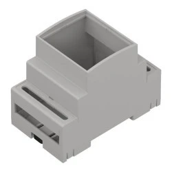 Obudowy modułowe na szynę DIN - są to obudowy dostosowane do montażu na szynach DIN. Występują one w kolorze jasnoszarym. Tworzywo z jakiego je wykonujemy to polistyren, ABS oraz ABS V0 (samogasnący). Istnieje także możliwość zakupu tych obudów z filtrami transparentnymi w kolorze czerwonym zamiast białego panelu górnego.