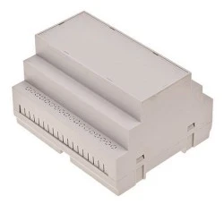 Obudowy modułowe na szynę DIN - są to obudowy dostosowane do montażu na szynach DIN. Występują one w kolorze jasnoszarym. Tworzywo z jakiego je wykonujemy to polistyren, ABS oraz ABS V0 (samogasnący). Istnieje także możliwość zakupu tych obudów z filtrami transparentnymi w kolorze czerwonym zamiast białego panelu górnego.
