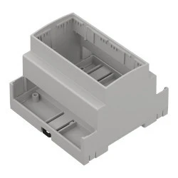 Obudowy modułowe na szynę DIN - są to obudowy dostosowane do montażu na szynach DIN. Występują one w kolorze jasnoszarym. Tworzywo z jakiego je wykonujemy to polistyren, ABS oraz ABS V0 (samogasnący). Istnieje także możliwość zakupu tych obudów z filtrami transparentnymi w kolorze czerwonym zamiast białego panelu górnego.