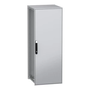 PanelSeT SFN to wolnostojąca, modułowa obudowa ze stali zdekarbonizowej dla różnych zastosowań. Zawiera stal pochodzącą z recyklingu, która jest produkowana z wykorzystaniem energii odnawialnej, co skutkuje znaczną redukcją emisji CO2. Jej nominalna wysokość, szerokość i głębokość wynoszą odpowiednio 1600 mm, 600 mm i 600 mm. Rama i wsporniki obudowy wykonane są z galwanizowanej stali, co zapewnia jej trwałość. Drzwi i panele wykonane są z blachy stalowej, a uchwyt z poliamidu 6 z dodatkiem 30% włókna szklanego. Epoksydowo-poliestrowa powłoka proszkowa zapewnia gładki wygląd. Obudowa ma kolor szary (RAL 7035) z czarnym (RAL 9005) uchwytem. Jedne pełne drzwi, jeden panel tylny, jeden dach, dwie szyny przesuwne i jeden zestaw szybko mocujących wsporników płyty montażowej. Stopień otwarcia drzwi wynosi do 120 stopni, co oznacza, że mogą być otwierane z dowolnej strony. Drzwi są wyposażone w czteropunktowy zamek z klamką, który ma 5 mm wkładkę z podwójnym prętem dla bezpieczeństwa. Obudowa posiada stopień ochrony IP55, co czyni ją odporną na przedostawanie się pyłu, wody i oleju. Jest również odporna na uderzenia, z klasą ochrony mechanicznej IK10. Dostęp z tyłu, z przodu i z boku zapewnia wygodną obsługę.