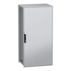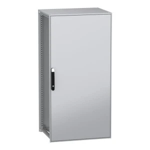 PanelSeT SFN to wolnostojąca, modułowa obudowa ze stali zdekarbonizowej dla różnych zastosowań. Zawiera stal pochodzącą z recyklingu, która jest produkowana z wykorzystaniem energii odnawialnej, co skutkuje znaczną redukcją emisji CO2. Jej nominalna wysokość, szerokość i głębokość wynoszą odpowiednio 1600 mm, 800 mm i 600 mm. Rama i wsporniki obudowy wykonane są z galwanizowanej stali, co zapewnia jej trwałość. Drzwi i panele wykonane są z blachy stalowej, a uchwyt z poliamidu 6 z dodatkiem 30% włókna szklanego. Epoksydowo-poliestrowa powłoka proszkowa zapewnia gładki wygląd. Obudowa ma kolor szary (RAL 7035) z czarnym (RAL 9005) uchwytem. Jedne pełne drzwi, jeden panel tylny, jeden dach, dwie szyny przesuwne i jeden zestaw szybko mocujących wsporników płyty montażowej. Stopień otwarcia drzwi wynosi do 120 stopni, co oznacza, że mogą być otwierane z dowolnej strony. Drzwi są wyposażone w czteropunktowy zamek z klamką, który ma 5 mm wkładkę z podwójnym prętem dla bezpieczeństwa. Obudowa posiada stopień ochrony IP55, co czyni ją odporną na przedostawanie się pyłu, wody i oleju. Jest również odporna na uderzenia, z klasą ochrony mechanicznej IK10. Dostęp z tyłu, z przodu i z boku zapewnia wygodną obsługę.