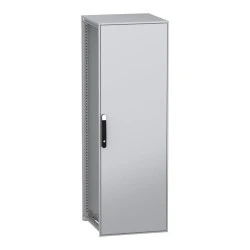 PanelSeT SFN to wolnostojąca, modułowa obudowa ze stali zdekarbonizowej dla różnych zastosowań. Zawiera stal pochodzącą z recyklingu, która jest produkowana z wykorzystaniem energii odnawialnej, co skutkuje znaczną redukcją emisji CO2. Jej nominalna wysokość, szerokość i głębokość wynoszą odpowiednio 1800 mm, 600 mm i 600 mm. Rama i wsporniki obudowy wykonane są z galwanizowanej stali, co zapewnia jej trwałość. Drzwi i panele wykonane są z blachy stalowej, a uchwyt z poliamidu 6 z dodatkiem 30% włókna szklanego. Epoksydowo-poliestrowa powłoka proszkowa zapewnia gładki wygląd. Obudowa ma kolor szary (RAL 7035) z czarnym (RAL 9005) uchwytem. Jedne pełne drzwi, jeden panel tylny, jeden dach, dwie szyny przesuwne i jeden zestaw szybko mocujących wsporników płyty montażowej. Stopień otwarcia drzwi wynosi do 120 stopni, co oznacza, że mogą być otwierane z dowolnej strony. Drzwi są wyposażone w czteropunktowy zamek z klamką, który ma 5 mm wkładkę z podwójnym prętem dla bezpieczeństwa. Obudowa posiada stopień ochrony IP55, co czyni ją odporną na przedostawanie się pyłu, wody i oleju. Jest również odporna na uderzenia, z klasą ochrony mechanicznej IK10. Dostęp z tyłu, z przodu i z boku zapewnia wygodną obsługę.
