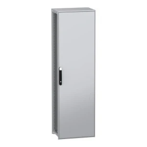 PanelSeT SFN to wolnostojąca, modułowa obudowa ze stali zdekarbonizowej dla różnych zastosowań. Zawiera stal pochodzącą z recyklingu, która jest produkowana z wykorzystaniem energii odnawialnej, co skutkuje znaczną redukcją emisji CO2. Jej nominalna wysokość, szerokość i głębokość wynoszą odpowiednio 2000 mm, 600 mm i 400 mm. Rama i wsporniki obudowy wykonane są z galwanizowanej stali, co zapewnia jej trwałość. Drzwi i panele wykonane są z blachy stalowej, a uchwyt z poliamidu 6 z dodatkiem 30% włókna szklanego. Epoksydowo-poliestrowa powłoka proszkowa zapewnia gładki wygląd. Obudowa ma kolor szary (RAL 7035) z czarnym (RAL 9005) uchwytem. Jedne pełne drzwi, jeden panel tylny, jeden dach, dwie szyny przesuwne i jeden zestaw szybko mocujących wsporników płyty montażowej. Stopień otwarcia drzwi wynosi do 120 stopni, co oznacza, że mogą być otwierane z dowolnej strony. Drzwi są wyposażone w czteropunktowy zamek z klamką, który ma 5 mm wkładkę z podwójnym prętem dla bezpieczeństwa. Obudowa posiada stopień ochrony IP55, co czyni ją odporną na przedostawanie się pyłu, wody i oleju. Jest również odporna na uderzenia, z klasą ochrony mechanicznej IK10. Dostęp z tyłu, z przodu i z boku zapewnia wygodną obsługę.