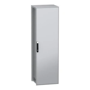 PanelSeT SFN to wolnostojąca, modułowa obudowa ze stali zdekarbonizowej dla różnych zastosowań. Zawiera stal pochodzącą z recyklingu, która jest produkowana z wykorzystaniem energii odnawialnej, co skutkuje znaczną redukcją emisji CO2. Jej nominalna wysokość, szerokość i głębokość wynoszą odpowiednio 2000 mm, 600 mm i 500 mm. Rama i wsporniki obudowy wykonane są z galwanizowanej stali, co zapewnia jej trwałość. Drzwi i panele wykonane są z blachy stalowej, a uchwyt z poliamidu 6 z dodatkiem 30% włókna szklanego. Epoksydowo-poliestrowa powłoka proszkowa zapewnia gładki wygląd. Obudowa ma kolor szary (RAL 7035) z czarnym (RAL 9005) uchwytem. Jedne pełne drzwi, jeden panel tylny, jeden dach, dwie szyny przesuwne i jeden zestaw szybko mocujących wsporników płyty montażowej. Stopień otwarcia drzwi wynosi do 120 stopni, co oznacza, że mogą być otwierane z dowolnej strony. Drzwi są wyposażone w czteropunktowy zamek z klamką, który ma 5 mm wkładkę z podwójnym prętem dla bezpieczeństwa. Obudowa posiada stopień ochrony IP55, co czyni ją odporną na przedostawanie się pyłu, wody i oleju. Jest również odporna na uderzenia, z klasą ochrony mechanicznej IK10. Dostęp z tyłu, z przodu i z boku zapewnia wygodną obsługę.