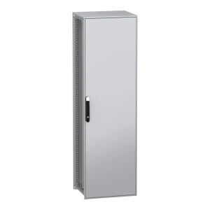 PanelSeT SFN to wolnostojąca, modułowa obudowa ze stali zdekarbonizowej dla różnych zastosowań. Zawiera stal pochodzącą z recyklingu, która jest produkowana z wykorzystaniem energii odnawialnej, co skutkuje znaczną redukcją emisji CO2. Jej nominalna wysokość, szerokość i głębokość wynoszą odpowiednio 2000 mm, 600 mm i 500 mm. Rama i wsporniki obudowy wykonane są z galwanizowanej stali, co zapewnia jej trwałość. Drzwi i panele wykonane są z blachy stalowej, a uchwyt z poliamidu 6 z dodatkiem 30% włókna szklanego. Epoksydowo-poliestrowa powłoka proszkowa zapewnia gładki wygląd. Obudowa ma kolor szary (RAL 7035) z czarnym (RAL 9005) uchwytem. Jedne pełne drzwi, jeden panel tylny, jeden dach, dwie szyny przesuwne i jeden zestaw szybko mocujących wsporników płyty montażowej. Stopień otwarcia drzwi wynosi do 120 stopni, co oznacza, że mogą być otwierane z dowolnej strony. Drzwi są wyposażone w czteropunktowy zamek z klamką, który ma 5 mm wkładkę z podwójnym prętem dla bezpieczeństwa. Obudowa posiada stopień ochrony IP55, co czyni ją odporną na przedostawanie się pyłu, wody i oleju. Jest również odporna na uderzenia, z klasą ochrony mechanicznej IK10. Dostęp z tyłu, z przodu i z boku zapewnia wygodną obsługę.