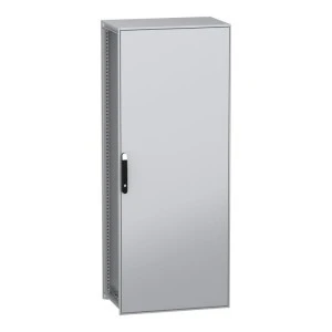 PanelSeT SFN to wolnostojąca, modułowa obudowa ze stali zdekarbonizowej dla różnych zastosowań. Zawiera stal pochodzącą z recyklingu, która jest produkowana z wykorzystaniem energii odnawialnej, co skutkuje znaczną redukcją emisji CO2. Jej nominalna wysokość, szerokość i głębokość wynoszą odpowiednio 2000 mm, 800 mm i 500 mm. Rama i wsporniki obudowy wykonane są z galwanizowanej stali, co zapewnia jej trwałość. Drzwi i panele wykonane są z blachy stalowej, a uchwyt z poliamidu 6 z dodatkiem 30% włókna szklanego. Epoksydowo-poliestrowa powłoka proszkowa zapewnia gładki wygląd. Obudowa ma kolor szary (RAL 7035) z czarnym (RAL 9005) uchwytem. Jedne pełne drzwi, jeden panel tylny, jeden dach, dwie szyny przesuwne i jeden zestaw szybko mocujących wsporników płyty montażowej. Stopień otwarcia drzwi wynosi do 120 stopni, co oznacza, że mogą być otwierane z dowolnej strony. Drzwi są wyposażone w czteropunktowy zamek z klamką, który ma 5 mm wkładkę z podwójnym prętem dla bezpieczeństwa. Obudowa posiada stopień ochrony IP55, co czyni ją odporną na przedostawanie się pyłu, wody i oleju. Jest również odporna na uderzenia, z klasą ochrony mechanicznej IK10. Dostęp z tyłu, z przodu i z boku zapewnia wygodną obsługę.