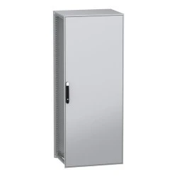 PanelSeT SFN to wolnostojąca, modułowa obudowa ze stali zdekarbonizowej dla różnych zastosowań. Zawiera stal pochodzącą z recyklingu, która jest produkowana z wykorzystaniem energii odnawialnej, co skutkuje znaczną redukcją emisji CO2. Jej nominalna wysokość, szerokość i głębokość wynoszą odpowiednio 2000 mm, 800 mm i 600 mm. Rama i wsporniki obudowy wykonane są z galwanizowanej stali, co zapewnia jej trwałość. Drzwi i panele wykonane są z blachy stalowej, a uchwyt z poliamidu 6 z dodatkiem 30% włókna szklanego. Epoksydowo-poliestrowa powłoka proszkowa zapewnia gładki wygląd. Obudowa ma kolor szary (RAL 7035) z czarnym (RAL 9005) uchwytem. Jedne pełne drzwi, jeden panel tylny, jeden dach, dwie szyny przesuwne i jeden zestaw szybko mocujących wsporników płyty montażowej. Stopień otwarcia drzwi wynosi do 120 stopni, co oznacza, że mogą być otwierane z dowolnej strony. Drzwi są wyposażone w czteropunktowy zamek z klamką, który ma 5 mm wkładkę z podwójnym prętem dla bezpieczeństwa. Obudowa posiada stopień ochrony IP55, co czyni ją odporną na przedostawanie się pyłu, wody i oleju. Jest również odporna na uderzenia, z klasą ochrony mechanicznej IK10. Dostęp z tyłu, z przodu i z boku zapewnia wygodną obsługę.