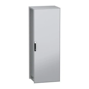 PanelSeT SFN to wolnostojąca, modułowa obudowa ze stali zdekarbonizowej dla różnych zastosowań. Zawiera stal pochodzącą z recyklingu, która jest produkowana z wykorzystaniem energii odnawialnej, co skutkuje znaczną redukcją emisji CO2. Jej nominalna wysokość, szerokość i głębokość wynoszą odpowiednio 2200 mm, 800 mm i 600 mm. Rama i wsporniki obudowy wykonane są z galwanizowanej stali, co zapewnia jej trwałość. Drzwi i panele wykonane są z blachy stalowej, a uchwyt z poliamidu 6 z dodatkiem 30% włókna szklanego. Epoksydowo-poliestrowa powłoka proszkowa zapewnia gładki wygląd. Obudowa ma kolor szary (RAL 7035) z czarnym (RAL 9005) uchwytem. Jedne pełne drzwi, jeden panel tylny, jeden dach, dwie szyny przesuwne i jeden zestaw szybko mocujących wsporników płyty montażowej. Stopień otwarcia drzwi wynosi do 120 stopni, co oznacza, że mogą być otwierane z dowolnej strony. Drzwi są wyposażone w czteropunktowy zamek z klamką, który ma 5 mm wkładkę z podwójnym prętem dla bezpieczeństwa. Obudowa posiada stopień ochrony IP55, co czyni ją odporną na przedostawanie się pyłu, wody i oleju. Jest również odporna na uderzenia, z klasą ochrony mechanicznej IK10. Dostęp z tyłu, z przodu i z boku zapewnia wygodną obsługę.