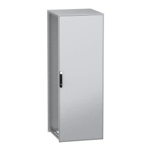 PanelSeT SFN to wolnostojąca, modułowa obudowa ze stali zdekarbonizowej dla różnych zastosowań. Zawiera stal pochodzącą z recyklingu, która jest produkowana z wykorzystaniem energii odnawialnej, co skutkuje znaczną redukcją emisji CO2. Jej nominalna wysokość, szerokość i głębokość wynoszą odpowiednio 2200 mm, 800 mm i 800 mm. Rama i wsporniki obudowy wykonane są z galwanizowanej stali, co zapewnia jej trwałość. Drzwi i panele wykonane są z blachy stalowej, a uchwyt z poliamidu 6 z dodatkiem 30% włókna szklanego. Epoksydowo-poliestrowa powłoka proszkowa zapewnia gładki wygląd. Obudowa ma kolor szary (RAL 7035) z czarnym (RAL 9005) uchwytem. Jedne pełne drzwi, jeden panel tylny, jeden dach, dwie szyny przesuwne i jeden zestaw szybko mocujących wsporników płyty montażowej. Stopień otwarcia drzwi wynosi do 120 stopni, co oznacza, że mogą być otwierane z dowolnej strony. Drzwi są wyposażone w czteropunktowy zamek z klamką, który ma 5 mm wkładkę z podwójnym prętem dla bezpieczeństwa. Obudowa posiada stopień ochrony IP55, co czyni ją odporną na przedostawanie się pyłu, wody i oleju. Jest również odporna na uderzenia, z klasą ochrony mechanicznej IK10. Dostęp z tyłu, z przodu i z boku zapewnia wygodną obsługę.