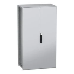 PanelSeT SFN to wolnostojąca, modułowa obudowa ze stali zdekarbonizowej dla różnych zastosowań. Zawiera stal pochodzącą z recyklingu, która jest produkowana z wykorzystaniem energii odnawialnej, co skutkuje znaczną redukcją emisji CO2. Jej nominalna wysokość, szerokość i głębokość wynoszą odpowiednio 1800 mm, 1000 mm i 600 mm. Rama i wsporniki obudowy wykonane są z galwanizowanej stali, co zapewnia jej trwałość. Drzwi i panele wykonane są z blachy stalowej, a uchwyt z poliamidu 6 z dodatkiem 30% włókna szklanego. Epoksydowo-poliestrowa powłoka proszkowa zapewnia gładki wygląd. Obudowa ma kolor szary (RAL 7035) z czarnym (RAL 9005) uchwytem. Dwoje drzwi pełnych, jeden panel tylny, jeden dach, dwie szyny przesuwne i jeden zestaw szybko mocujących wsporników płyty montażowej. Stopień otwarcia drzwi wynosi do 120 stopni. Główne drzwi są wyposażone w czteropunktowy zamek z klamką, który ma 5 mm wkładkę z podwójnym prętem dla bezpieczeństwa, podczas gdy drugie drzwi mają system blokujący z klamką. Obudowa posiada stopień ochrony IP55, co czyni ją odporną na przedostawanie się pyłu, wody i oleju. Jest również odporna na uderzenia, z klasą ochrony mechanicznej IK10. Dostęp z tyłu, z przodu i z boku zapewnia wygodną obsługę.