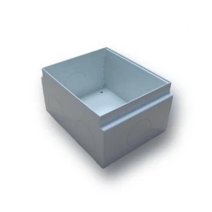 Obudowa (puszka) płytka do betonu do puszki z ramką EM/FLBSCF169P. Zmniejszona głębokość, pozwala wykonać płytsze wkucie lub wylewkę o mniejszej grubości, co odbywa się kosztem mniejszej przestrzeni na kable w obudowie lub braku możliwości obniżenia płaszczyzny montażowej gniazd w puszce z ramką. Umożliwia montaż w wykutym otworze lub w betonie wylewanym. Posiada osłabienia na ściankach do wybicia otworów do wprowadzenia przewodów.