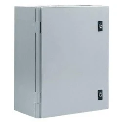 Szafki wykonane są z jasnoszarego (RAL 7035), barwionego w masie, tłoczonego na gorąco, wzmocnionego włóknem szklanym poliestru. Dostępne są gwintowane do mocowania płyty montażowej i ramy montażowej. Szafy ARIA zapewniają optymalne bezpieczeństwo zarówno użytkownikom, jak i urządzeniom, dzięki izolacji ochronnej i wysokiemu stopniowi ochrony do IP66. Szafy ARIA wytrzymują ciągłe temperatury do 70°C (temperatury szczytowe do 130°C). Samogasnące i bezhalogenowe. Znamionowe napięcie izolacji Ui = 1000V. PA75Z szafa 735x535x270 ARIA, końcówka podwójna 3mm, zamknięcie 2-punktowe IP65, IK08