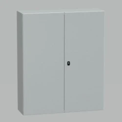 Seria Spacial NSY posiada bogatą ofertę obudów, cokołów do obudów oraz cokołów do obudów. Wspomniana obudowa ma 300 mm głębokości, 1000 mm szerokości oraz 1200 mm wysokości. Wyposażono ją w jeden zamek oraz dwoje drzwi. Nie są one przeszklone ani wentylowane. Nie powinny też być stosowane jako drzwi tylne. Osprzęt posiada płytę montażową. Przeznaczony jest do montażu powierzchniowego na ścianie lub podłodze. Obudowa jest koloru szarego o odcieniu 7035. Wykonano ją ze stali i pomalowano proszkowo, dzięki czemu stopień ochrony wynosi IP55. Oznacza to, że obudowa ma wysoką odporność na działanie wody, pyłu i kurzu. Ponieważ jest szczelna, można ją wykorzystywać także na zewnątrz. Obudowę wielokrotnie testowano, aby potwierdzić najwyższą jej jakość i trwałość. Urządzenia tego typu posiadają wszystkie niezbędne atesty i certyfikaty. SCHNEIDER ELECTRIC od lat pracuje nad wytwarzaniem nowoczesnych urządzeń służących do sterowania zasilaniem elektrycznym.