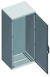 Obudowa stojąca z serii PanelSeT SM firmy Schneider Electric o numerze katalogowym NSYSM1212402DP o wymiarach 1200x 1200x 400mm. Wykonana z blachy stalowej w kolorze szarym RAL7035. Obudowa jest wyposażona w pełne podwójne drzwi oraz płytę montażową. Obudowy z serii PanelSeT SM to kompaktowe obudowa stalowa o IP55. Korpus obudowy wykonany jest jako p ojedynczy element z przyspawanym panelem tylnym oraz przednią sztywną ramą z przyspawanymi narożnikami. Szafy wyposażone są w szyny drzwiowe, których wysokość można regulować i używać do mocowania kabli oraz uchwyt o solidnej konstrukcji do łatwej aktywacji systemu blokującego, umożliwiając instalacje wkładki o dowolnym kształcie. Wkładkę też można bardzo łatwo, jedynym kliknięciem wyminięć. Etykieta Green Premium jest zobowiązaniem firmy Schneider Electric do dostarczania produktów o najwyższej w swojej klasie ekologiczności. Green Premium obiecuje zgodność z najnowszymi przepisami, przejrzystość w zakresie wpływu na środowisko, a także produkty o obiegu zamkniętym i niskiej emisji CO2.