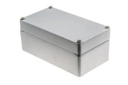 DIN1725, IEC 60529 NEMA 4X i 6P. UL 508A, UL 50, UL 50E. CE MIL-STD-810G (test wibracji mechanicznych i wstrząsów) ASTM B117 IEC 62262 IK 60068-2-75. Obudowa proszkowana RS Pro IP66 z odlewaną aluminium. Od RS Pro, szereg obudów aluminiowych wykonanych ze stopu aluminium marki Die Cast. Obudowy te są przeznaczone do trudnych i wymagających zastosowań, takich jak środowiska zewnętrzne. Obudowy są wodoszczelne i posiadają stopień ochrony IP66, w tym neoprenową uszczelkę o-ring i 4 platerowane miedzią śruby uziemiające. Jest to doskonała obudowa o różnych rozmiarach, spełniająca wymagania klasy IP66, w tym wielu innych standardów i zatwierdzeń. Wszystkie modele cechują się wysoką niezawodnością i doskonałą jakością. Charakterystyka i zalety. Niewodoszczelność Zaprojektowany do trudnych, wymagających zastosowań stop aluminiowy odlew kostny (ALSi12) Punkt mocowania na szynie DIN grubość ścian obudowy wynosi 3 mm Ziemniane proszkowane wykończenie w kolorze szarym. Zawartość zestawu. lid i podstawa obudowy O-ring neoprenowy / uszczelka 4 śruby lid ze stali nierdzewnej 4 x miedziane platerowane wkręty uziemiające. Co to jest obudowa?. Obudowy ogólnego przeznaczenia są skrzynkami ochronnymi, służącymi do przechowywania urządzeń przemysłowych, elektronicznych i innych urządzeń wrażliwych. W zależności od środowiska, mogą być wymagane różne poziomy ochrony. Te specjalne skrzynki Ability obejmują elementy elektryczne montowane na szynie DIN (jeśli są zamontowane) i chronią je przed niekorzystnymi warunkami. Ta obudowa nie jest połączona kołnierzami. Co oznacza skrót IP66?. Stopień ochrony IP jest znany jako - naruszenie ochrony lub międzynarodowa rating ochrony. Klasyfikacja jest zdefiniowana przez Międzynarodową Normę EN 60529 (British BS EN 60529:1992, European IEC 60529:1989). Normy określają poziom skuteczności uszczelniania obudów elektrycznych. Norma oznacza stopień ochrony przed ciałami obcymi, jak brud i woda. Klasyfikacja składa się z liter IP, po których następuje 2 cyfry/cyfry (IP 66). Pierwsza cyfra oznacza stopień ochrony przed wnikaniem ciał stałych. Druga cyfra oznacza stopień ochrony urządzenia umieszczonego w obudowie przed wodą. Przykład IP66 = Pierwsza liczba (6) Rozligniów. Przykład IP66 = Druga liczba (6) cieczy