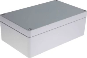 DIN1725, IEC 60529 NEMA 4X i 6P. UL 508A, UL 50, UL 50E. CE MIL-STD-810G (test wibracji mechanicznych i wstrząsów) ASTM B117 IEC 62262 IK 60068-2-75. Obudowa proszkowana RS Pro IP66 z odlewaną aluminium. Od RS Pro, szereg obudów aluminiowych wykonanych ze stopu aluminium marki Die Cast. Obudowy te są przeznaczone do trudnych i wymagających zastosowań, takich jak środowiska zewnętrzne. Obudowy są wodoszczelne i posiadają stopień ochrony IP66, w tym neoprenową uszczelkę o-ring i 4 platerowane miedzią śruby uziemiające. Jest to doskonała obudowa o różnych rozmiarach, spełniająca wymagania klasy IP66, w tym wielu innych standardów i zatwierdzeń. Wszystkie modele cechują się wysoką niezawodnością i doskonałą jakością. Charakterystyka i zalety. Niewodoszczelność Zaprojektowany do trudnych, wymagających zastosowań stop aluminiowy odlew kostny (ALSi12) Punkt mocowania na szynie DIN grubość ścian obudowy wynosi 3 mm Ziemniane proszkowane wykończenie w kolorze szarym. Zawartość zestawu. lid i podstawa obudowy O-ring neoprenowy / uszczelka 4 śruby lid ze stali nierdzewnej 4 x miedziane platerowane wkręty uziemiające. Co to jest obudowa?. Obudowy ogólnego przeznaczenia są skrzynkami ochronnymi, służącymi do przechowywania urządzeń przemysłowych, elektronicznych i innych urządzeń wrażliwych. W zależności od środowiska, mogą być wymagane różne poziomy ochrony. Te specjalne skrzynki Ability obejmują elementy elektryczne montowane na szynie DIN (jeśli są zamontowane) i chronią je przed niekorzystnymi warunkami. Ta obudowa nie jest połączona kołnierzami. Co oznacza skrót IP66?. Stopień ochrony IP jest znany jako - naruszenie ochrony lub międzynarodowa rating ochrony. Klasyfikacja jest zdefiniowana przez Międzynarodową Normę EN 60529 (British BS EN 60529:1992, European IEC 60529:1989). Normy określają poziom skuteczności uszczelniania obudów elektrycznych. Norma oznacza stopień ochrony przed ciałami obcymi, jak brud i woda. Klasyfikacja składa się z liter IP, po których następuje 2 cyfry/cyfry (IP 66). Pierwsza cyfra oznacza stopień ochrony przed wnikaniem ciał stałych. Druga cyfra oznacza stopień ochrony urządzenia umieszczonego w obudowie przed wodą. Przykład IP66 = Pierwsza liczba (6) Rozligniów. Przykład IP66 = Druga liczba (6) cieczy