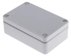 DIN1725, IEC 60529 NEMA 4X i 6P. UL 508A, UL 50, UL 50E. CE MIL-STD-810G (test wibracji mechanicznych i wstrząsów) ASTM B117 IEC 62262 IK 60068-2-75. Obudowa proszkowana RS Pro IP66 z odlewaną aluminium. Od RS Pro, szereg obudów aluminiowych wykonanych ze stopu aluminium marki Die Cast. Obudowy te są przeznaczone do trudnych i wymagających zastosowań, takich jak środowiska zewnętrzne. Obudowy są wodoszczelne i posiadają stopień ochrony IP66, w tym neoprenową uszczelkę o-ring i 4 platerowane miedzią śruby uziemiające. Jest to doskonała obudowa o różnych rozmiarach, spełniająca wymagania klasy IP66, w tym wielu innych standardów i zatwierdzeń. Wszystkie modele cechują się wysoką niezawodnością i doskonałą jakością. Charakterystyka i zalety. Niewodoszczelność Zaprojektowany do trudnych, wymagających zastosowań stop aluminiowy odlew kostny (ALSi12) Punkt mocowania na szynie DIN grubość ścian obudowy wynosi 3 mm Ziemniane proszkowane wykończenie w kolorze szarym. Zawartość zestawu. lid i podstawa obudowy O-ring neoprenowy / uszczelka 4 śruby lid ze stali nierdzewnej 4 x miedziane platerowane wkręty uziemiające. Co to jest obudowa?. Obudowy ogólnego przeznaczenia są skrzynkami ochronnymi, służącymi do przechowywania urządzeń przemysłowych, elektronicznych i innych urządzeń wrażliwych. W zależności od środowiska, mogą być wymagane różne poziomy ochrony. Te specjalne skrzynki Ability obejmują elementy elektryczne montowane na szynie DIN (jeśli są zamontowane) i chronią je przed niekorzystnymi warunkami. Ta obudowa nie jest połączona kołnierzami. Co oznacza skrót IP66?. Stopień ochrony IP jest znany jako - naruszenie ochrony lub międzynarodowa rating ochrony. Klasyfikacja jest zdefiniowana przez Międzynarodową Normę EN 60529 (British BS EN 60529:1992, European IEC 60529:1989). Normy określają poziom skuteczności uszczelniania obudów elektrycznych. Norma oznacza stopień ochrony przed ciałami obcymi, jak brud i woda. Klasyfikacja składa się z liter IP, po których następuje 2 cyfry/cyfry (IP 66). Pierwsza cyfra oznacza stopień ochrony przed wnikaniem ciał stałych. Druga cyfra oznacza stopień ochrony urządzenia umieszczonego w obudowie przed wodą. Przykład IP66 = Pierwsza liczba (6) Rozligniów. Przykład IP66 = Druga liczba (6) cieczy