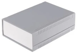 Szare obudowy instrumentu polistyrenowego. 2-częściowa obudowa formowana - (ciemnoszary) 2 panele końcowe - 1 anodowane aluminium i 1 jasnoszary plastik 8 Uchwyt mocujący w podstawie umożliwia montaż poziomej płytki drukowanej Zestawy otworów bocznych ułatwiają przewożenie do 4 PCB montowanych pionowo