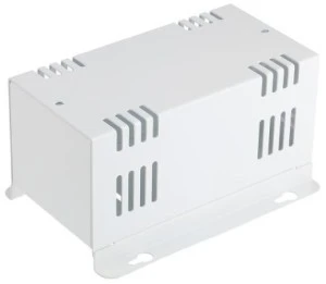 Układ samogwintujący. Obudowy transformatorowe montowane na ścianie. 2-częściowa obudowa (lid i podstawa) Szczelinowa podstawa i lid ułatwiają Otwór na klucze w podstawie do montażu na ścianie
