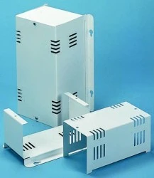 Układ samogwintujący. Obudowy transformatorowe montowane na ścianie. 2-częściowa obudowa (lid i podstawa) Szczelinowa podstawa i lid ułatwiają Otwór na klucze w podstawie do montażu na ścianie