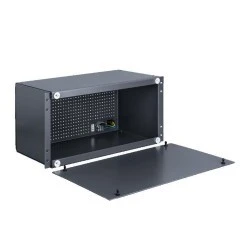 Obudowa BCS-RACK5U pozwala na zabudowę w szafie teletechnicznej RACK pełnej oferty produktowej, dedykowanej dotychczas dla obudów wewnętrzny i zewnętrznych. Przemyślana i unikatowa na polskim rynku konstrukcja, umożliwia montaż w jednej obudowie urządzeń, wraz z zasilaniem buforowym i akumulatorami. Korpus produkowany jest z blachy stalowej, a pokrywa maskująca z lekkiej blachy aluminiowej. Oba elementy lakierowane proszkowo na półmatowy, grafitowy kolor RAL 7024. Produkcja z użyciem nowoczesnej linii technologicznej zapewnia najwyższą jakość i precyzję wykonania. BCS-RACK5U posiada specjalne otworowanie w rastrze 10,8mm. Jest ono kompatybilne z rozstawem otworów montażowych modułów do zabudowy. Systemowe rozwiązanie pozwala na pionowy lub poziomy montaż wybranych urządzeń w dowolnej, otworowanej części obudowy.