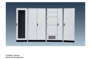 Obudowy wolnostojące E-Kabin serii S zostały zaprojektowane do stosowania w profesjonalnych aplikacjach wysokoprądowych. Nadają się do zastosowań wewnętrznych i posiadają modułową konstrukcję, która umożliwia rozbudowę poprzez łączenie ich obok siebie. W zależności od wyboru drzwi, mogą mieć stopień ochrony IP55 lub IP41. Wszystkie akcesoria, w tym konstrukcja główna, mające kontakt z otoczeniem zewnętrznym, są pokryte elektrostatyczną farbą proszkową na ocynkowanej blasze stalowej. Płyta dolna jest wliczona w standardowy zakres dostawy. W tej serii produktów dostępna jest opcja częściowych drzwi, która może być potrzebna w aplikacjach wysokoprądowych.
