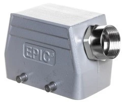 Prezentowany produkt jest obudową wtyczki typu kątowego. Osprzęt został wyprodukowany przez znaną i docenianą na całym świecie marką Lapp Kabel. Firma uchodzi za jednego z czołowych producentów między innymi kabli, przewodów, a także akcesoriów kablowych na świecie. W trakcie użytkowania produktu warto z całą pewnością zwrócić uwagę na wymiary osprzętu. Długość obudowy wtyczki wynosi bowiem 73 mm, szerokość 43 mm, a wysokość jest z kolei równa 52 mm. Nie bez znaczenia jest również zakres temperatury, w jakiej pracuje prezentowany osprzęt. Waha się ona bowiem od - 40 do 100 °C. Ta prostokątna obudowa została również wykonana z najwyższej jakości, specjalnie dobranego aluminium. Z kolei obudowa osprzętu została wykończona przez malowanie proszkowe. Dzięki temu produktowi przypisano stosunkowo wysoki stopień ochrony IP 65. Oznacza to, że obudowa wtyczki zapewnia skuteczną ochronę przed strumieniami wody, a także przed szkodliwym wnikaniem pyłu, dzięki czemu może być z powodzeniem instalowana nie tylko wewnątrz budynków, ale również na zewnątrz. Produkt jest częścią innowacyjnej linii EPIC.